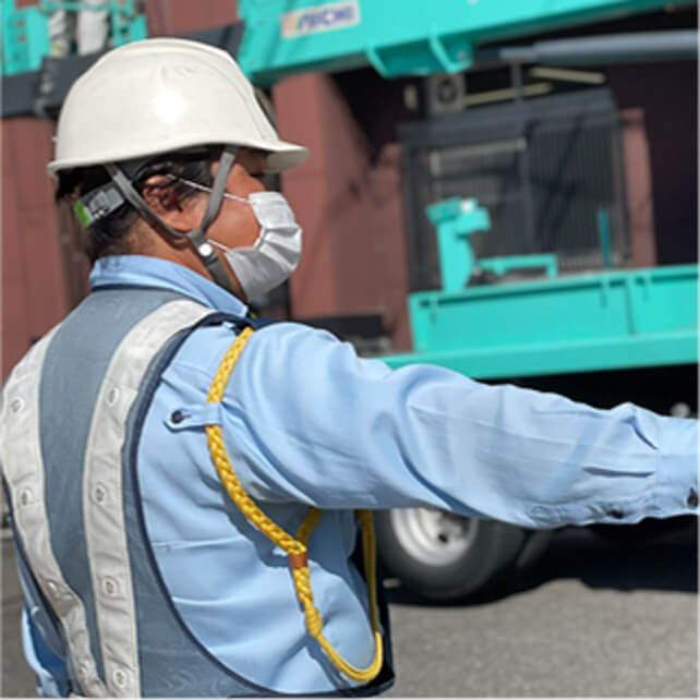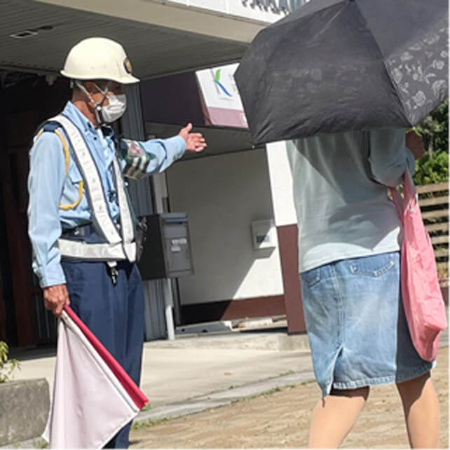 | 業務内容 | 工事現場通行車両の誘導や工事車両の誘導など、交通誘導業務をお任せします。 |