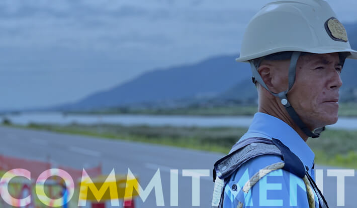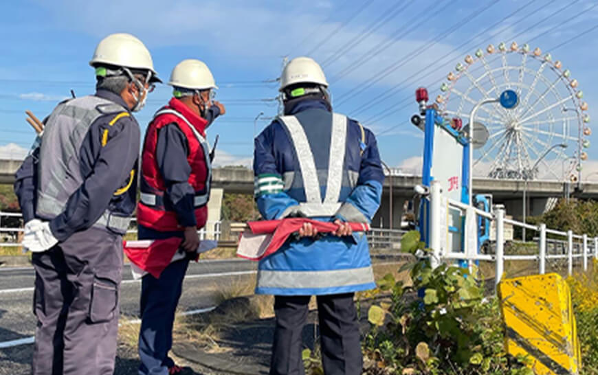 道路工事・建設工事・通信工事などの現場で、交通の流れを整え、車と歩行者の安全を守ります。